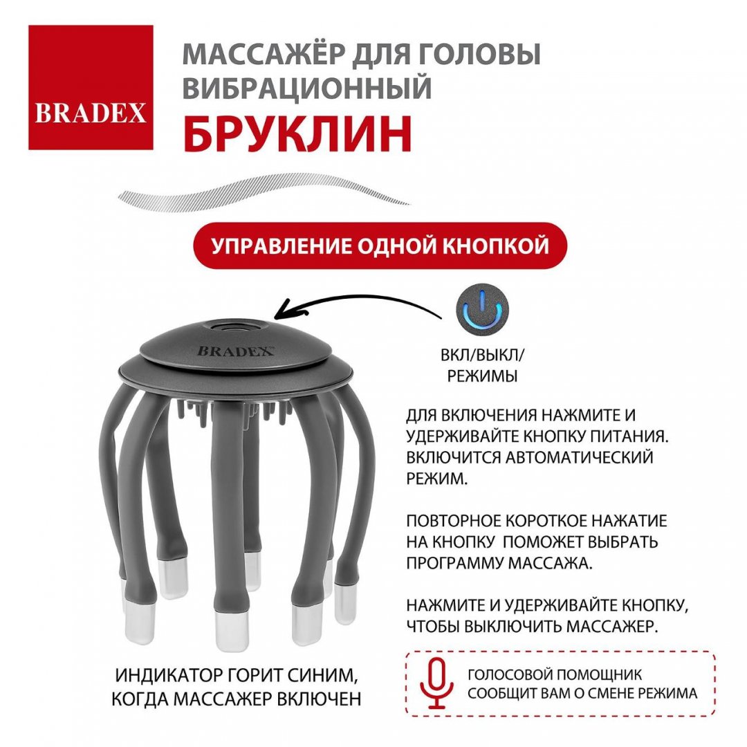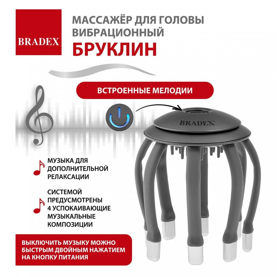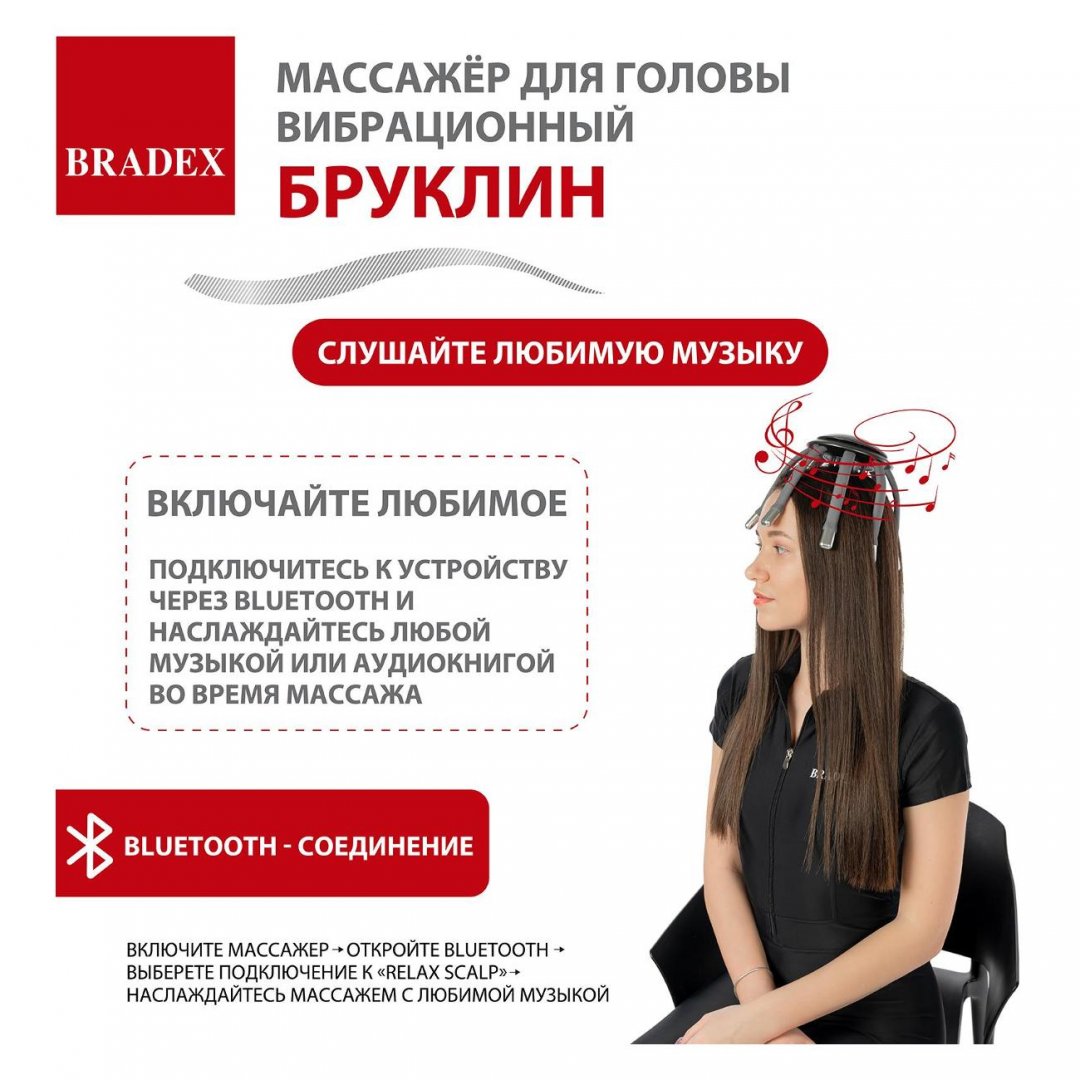 Массажер для головы Bradex «Бруклин», серый (KZ 1431) обеспечивает вибрационное воздействие на кожу в теменной зоне по акупунктурным точкам. Модель способствует улучшению кровотока, настроения, снимает усталость и напряжение, боль. Устройство имеет шесть программ работы. Функции инфракрасного излучения и нагревания до 37°С увеличивают степень воздействия на кожу головы. Модель с динамиками имеет Bluetooth-адаптер для подключения к смартфону и прослушивания музыкальных треков.