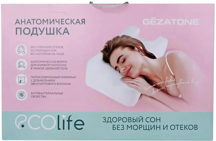 Анатомическая бьюти подушка EcoLife Gezatone -1 шт. Наволочка из эвкалиптового волокна – 1 шт.