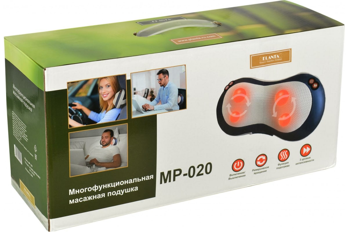 Массажная подушка Planta MP-020 - многофункциональная массажная подушка, которая позволит наслаждаться профессиональным массажем Шиацу в любом удобном месте: в автомобиле, дома и в офисе. Эргономичная форма, небольшие размеры и легкий вес – идеальное сочетание компактности и комфорта.