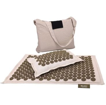 Набор включает в себя массажный коврик, подушку и сумку. Таким образом, его элементы удобно использовать вместе или отдельно, сложить в сумку и взять с собой. «Цветы жизни» – шипы уникальной формы– позволяют сделать массаж более приятным и комфортным. Ежедневный 15-30 минутный акупунктурный массаж тела рекомендуется при нарушении сна, головных болях, переутомлении, а также сразу после физических упражнений и нагрузок. Отличное средство для релаксации и медитации.