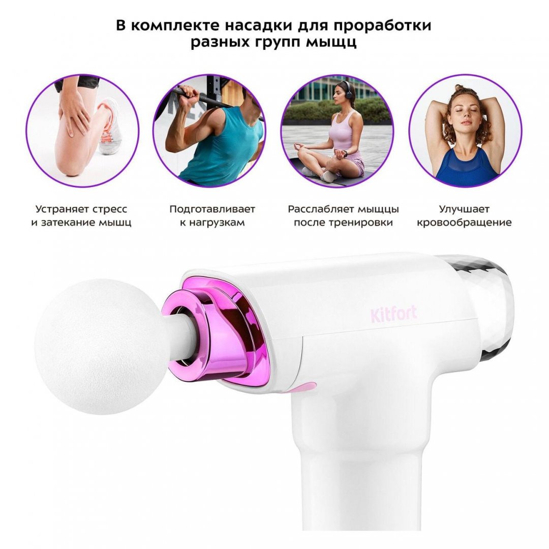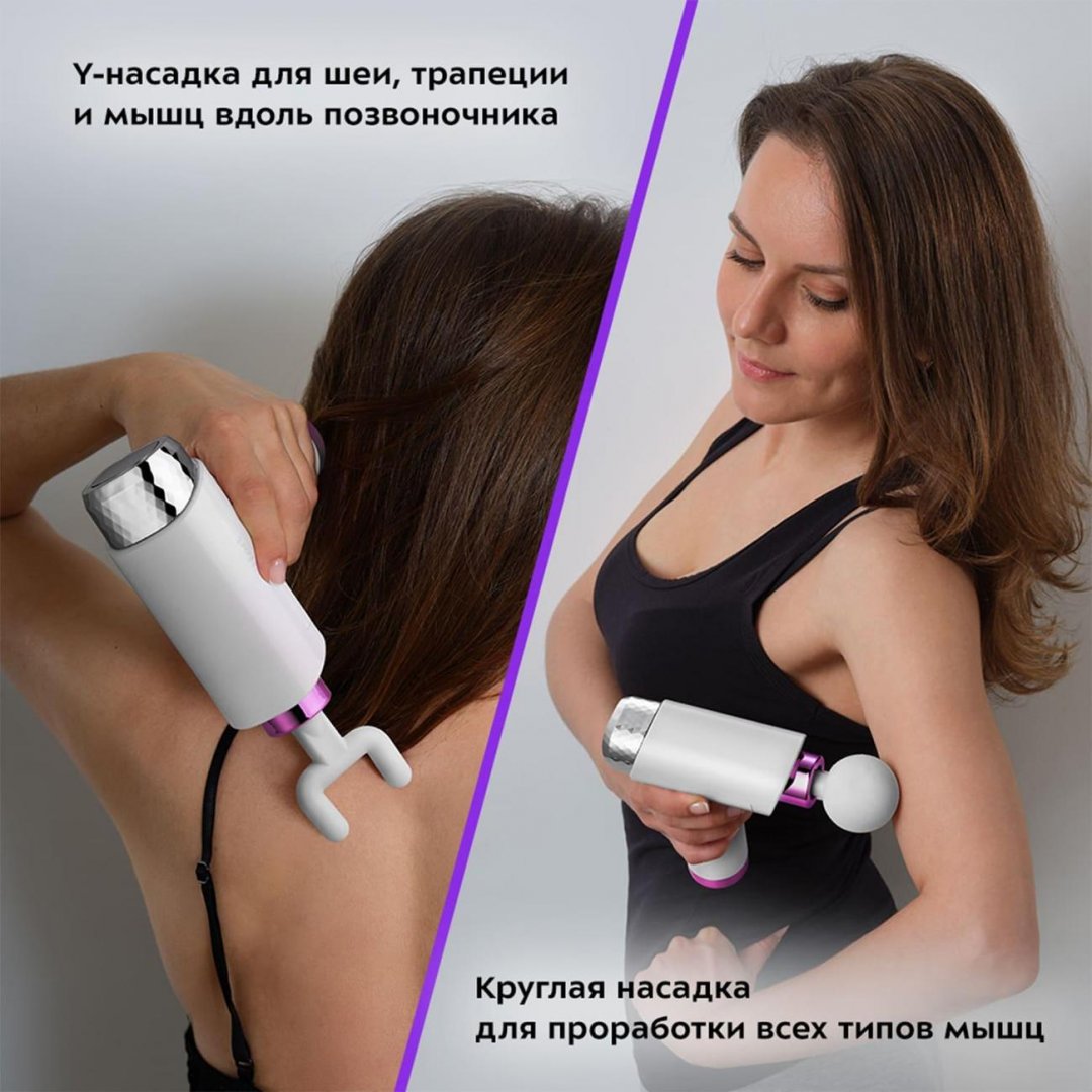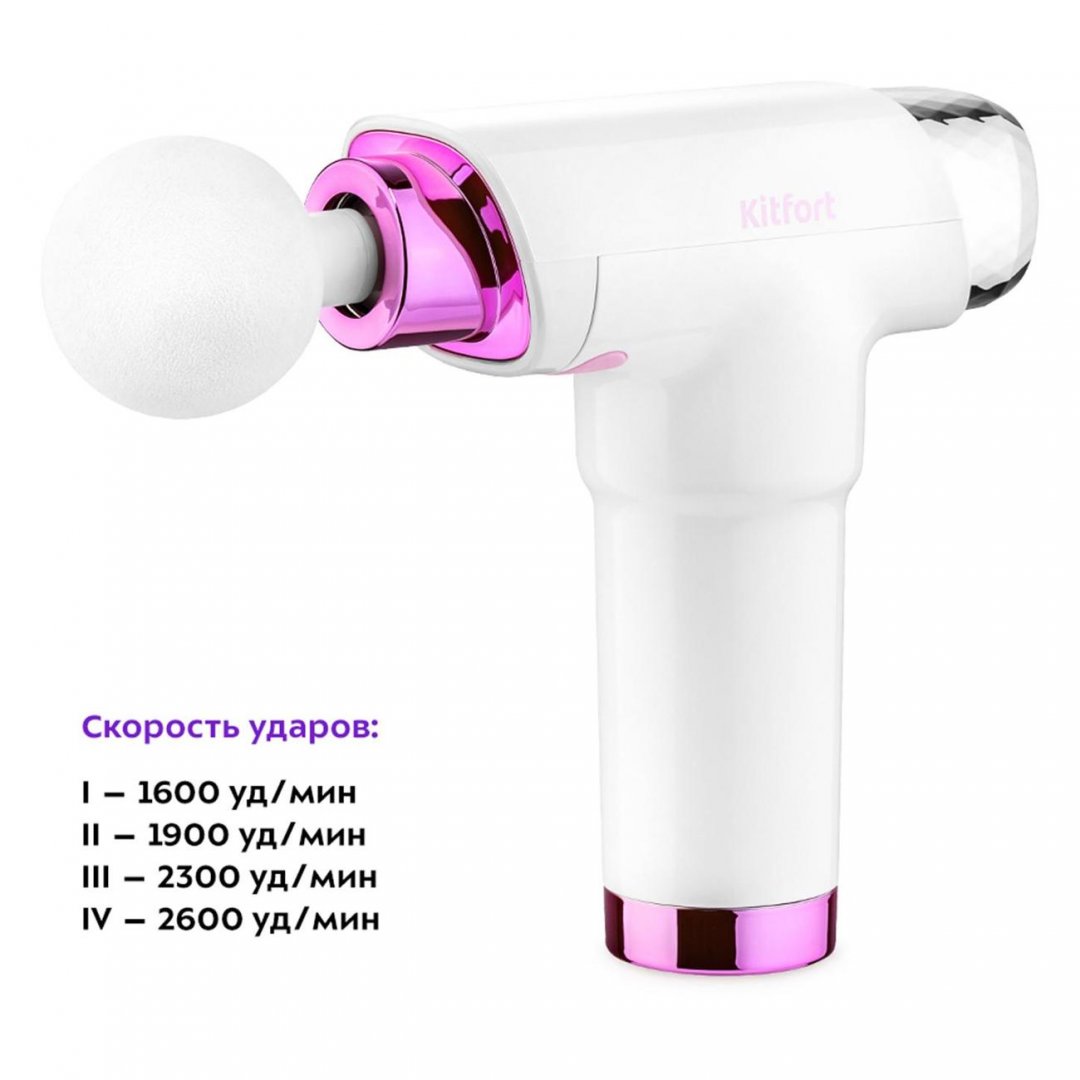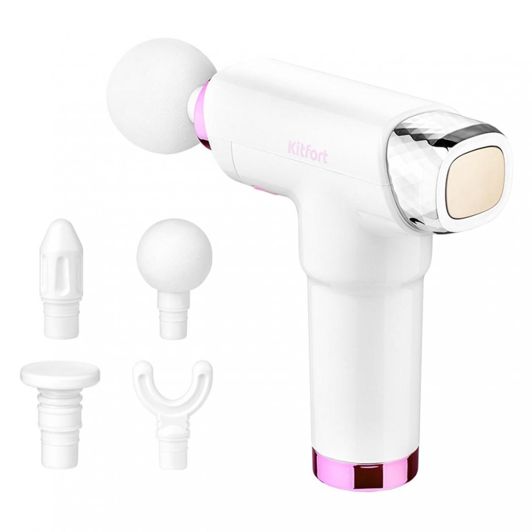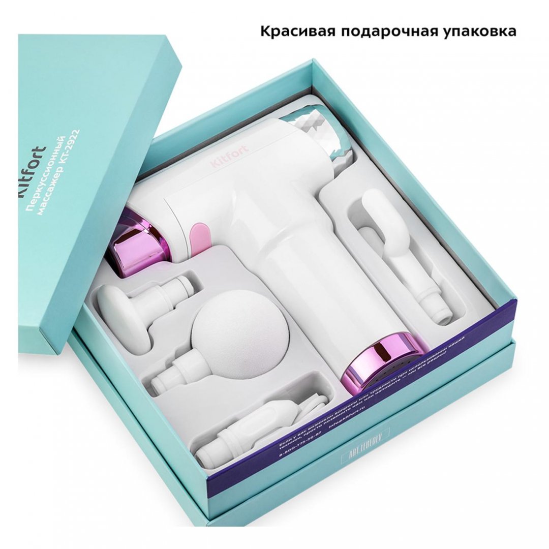 Перкуссионный массажер Kitfort КТ-2922 оборудован четырьмя сменными насадками. Для широких типов мышц предусмотрен плоский элемент. С помощью пулевидной насадки можно сделать точечный массаж. Y-элемент оптимален для шеи и мышц вдоль позвоночника. Круглая насадка позволяет проработать любые части тела. Интенсивность воздействия регулируется с учетом индивидуальных предпочтений.