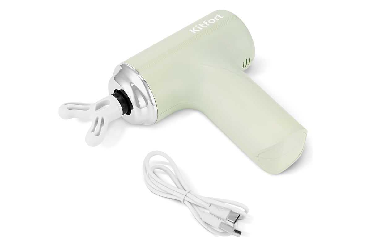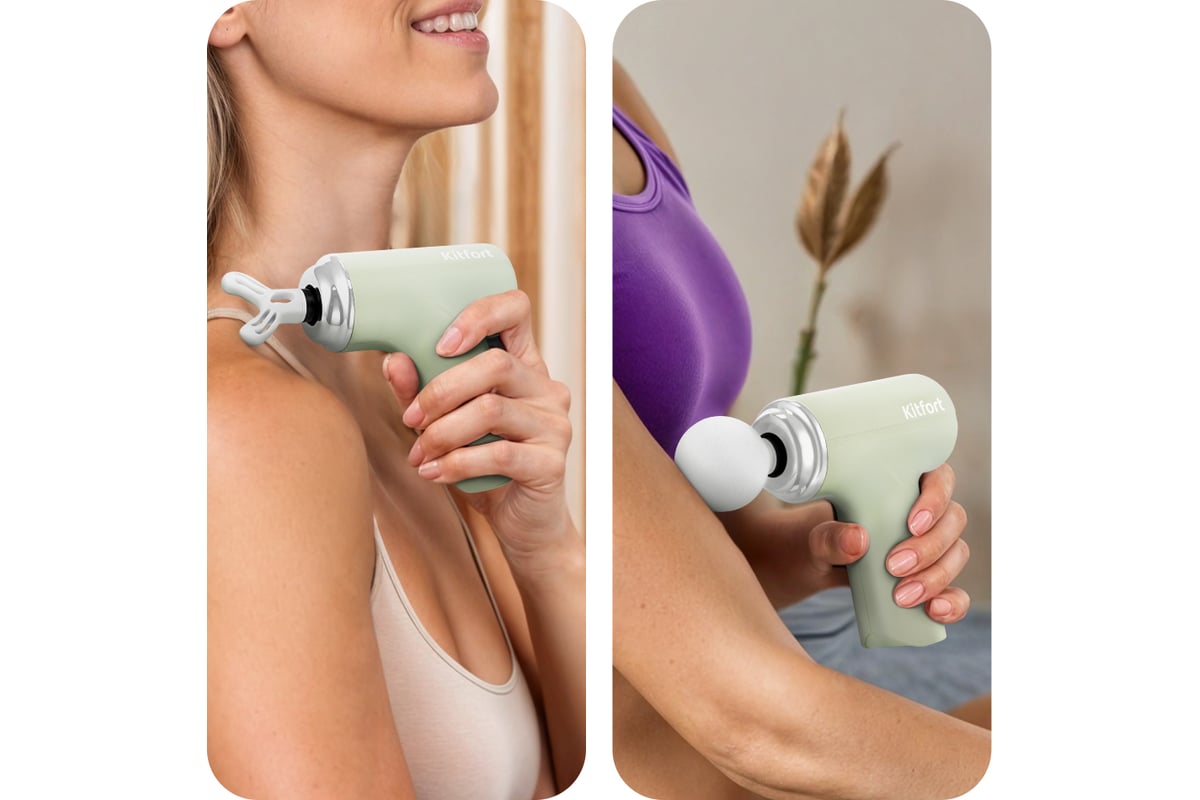 Модель КТ-5928 работает от аккумулятора, поэтому массажер можно брать с собой куда угодно: в спортзал, в офис, в поездку или использовать дома. Можно делать массаж, не снимая одежду. Перкуссионный массажер позволит мышцам расслабиться, а также улучшит кровоток и избавит от боли.