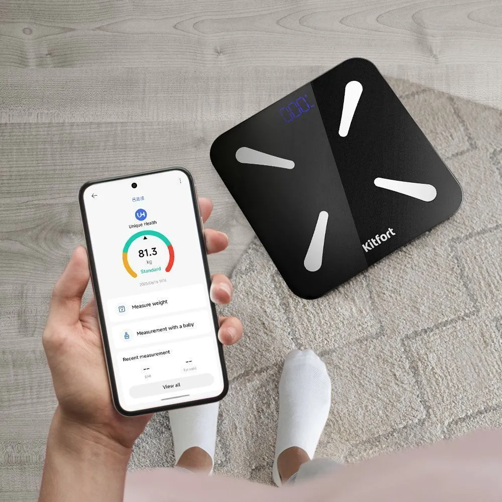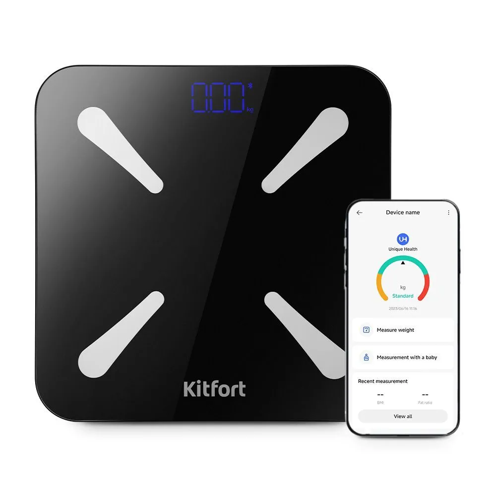 Электронные напольные весы обеспечивают высокую точность измерения. Весы КТ-848 представляют современное поколение «умных» весов, поскольку их можно подключить к приложению Unique Health, включив передачу данных через Bluetooth.