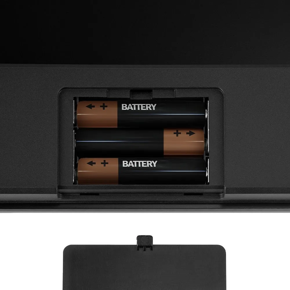 На обратной стороне устройства находится разъём для батареек. Низкое энергопотребление обеспечивает бесперебойную работу устройства от одного комплекта из трёх батареек AAA.