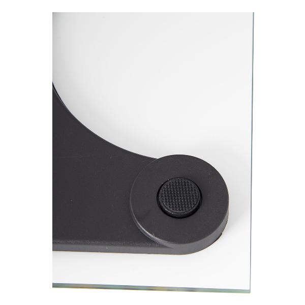 Корпус сделан из пластика, платформа выполнена из закаленного стекла. Такой выбор материалов позволяет прибору выдерживать нагрузку до 180 кг. Прорезиненные ножки препятствуют скольжению. В комплекте есть два элемента питания AAA. Размеры — 0,5х30х30 см, вес — 1,2 кг.