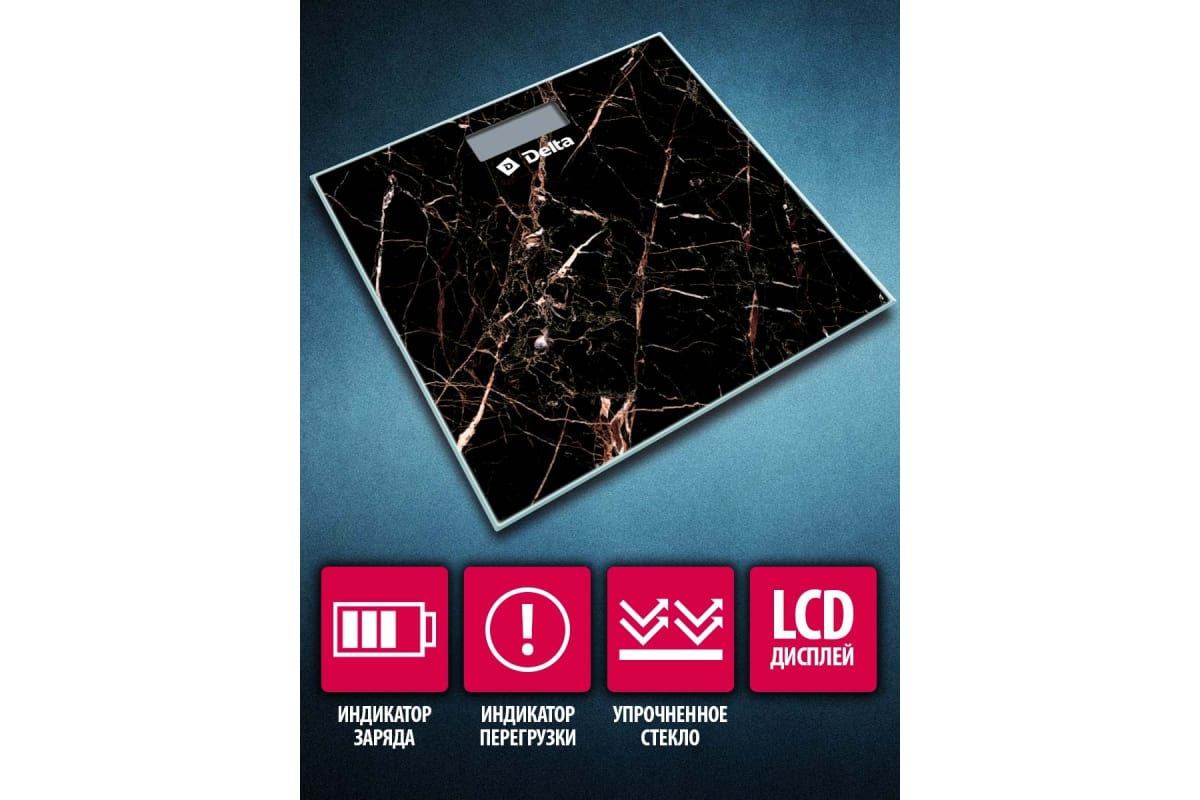 Весы напольные электронные DELTAD-9007 Black onix 180 кг Р1-00009200 используются для взвешивания человека, подойдут для бытового использования. Цифровой дисплей с автоматическим включением облегчает процесс эксплуатации весов.