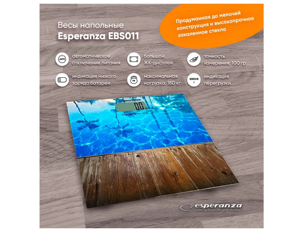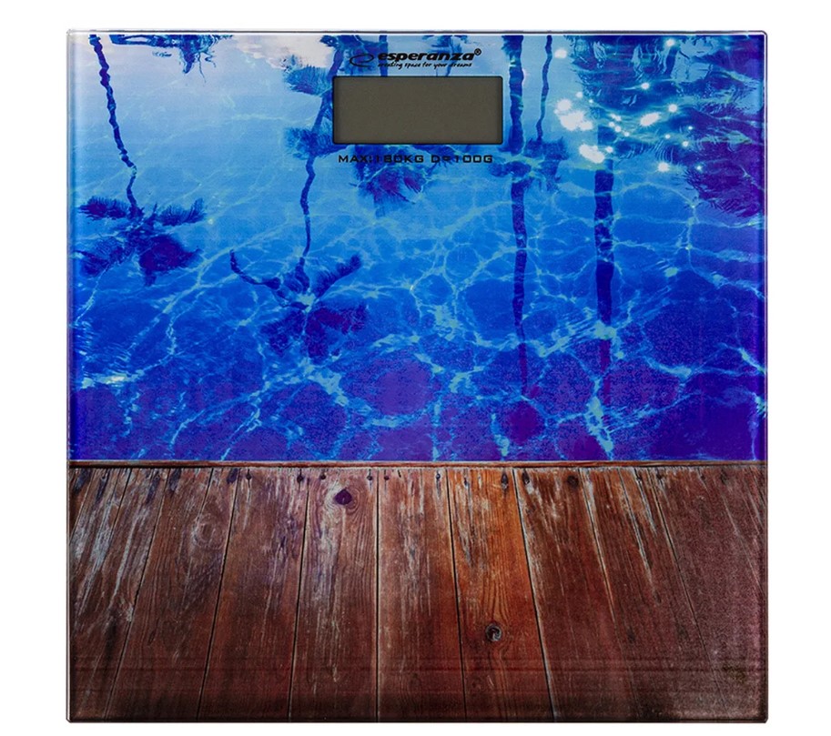 Напольные весы ESPERANZA Waikiki электронные в морской расцветке станут хорошим приобретением для человека, который следит за массой тела и здоровьем. Максимальная нагрузка для платформы из закаленного стекла составляет 180 кг при точности замеров до 100 г. Индикатор перегрузки просигнализирует, если этот порог превышен. Также весы оснащены индикацией низкого заряда батареи. Единица измерения веса: кг / фунт / ст. Устройство включается автоматически, как только пользователь встает на его поверхность. Весы ESPERANZA оснащены увеличенным ЖК-дисплеем 70х34 мм. Питание осуществляется от батареек типа CR2032 (в комплект не входят).