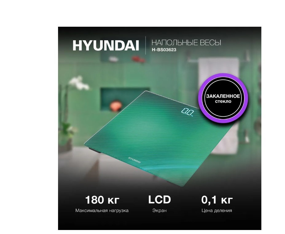 - БрэндHYUNDAIМодельH-BS03623ТипэлектронныеМаксимальная нагрузка180 кгЦена деления100 гИзмерение в килограммахесть