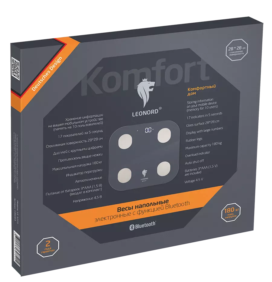 Автоотключение, Бесплатное приложение на телефоне, Индикатор перегрузки, Крупный LED дисплей с подсветкой, Противоскользящие ножки, Функция Bluetooth