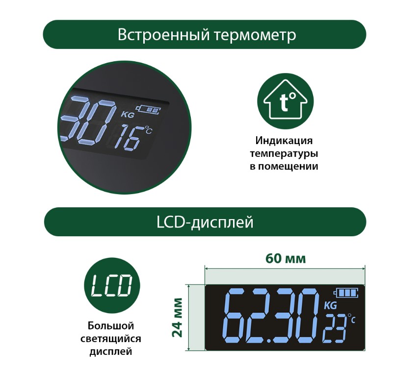 Для экономии заряда батарей весы отключаются автоматически, если не используются, а индикаторы перегрузки и замены батареи сделают работу весов бесперебойной в течение длительного времени.