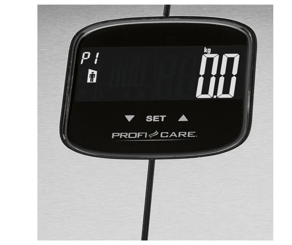 Диагностические весы 7 в 1 Для взвешивания, определение содержания жира, содержания воды, мышечной массы, массы костей, суточной потребности в калориях (BMR) и значения BMI (индекса массы тела) Платформа из нержавеющей стали 31 х 33 см Хорошо читаемый, высококачественный ЖК-дисплей Память на 10 пользователей. Индикация веса в кг/фунтах/унциях Диапазон измерения 5-180 кг. Сенсорное управление Автоматическое включение и выключение Нескользящие ножки. Индикатор низкого заряда батареи; Питание: 4x 1,5 В (AAA) (батареи не входят в комплект)