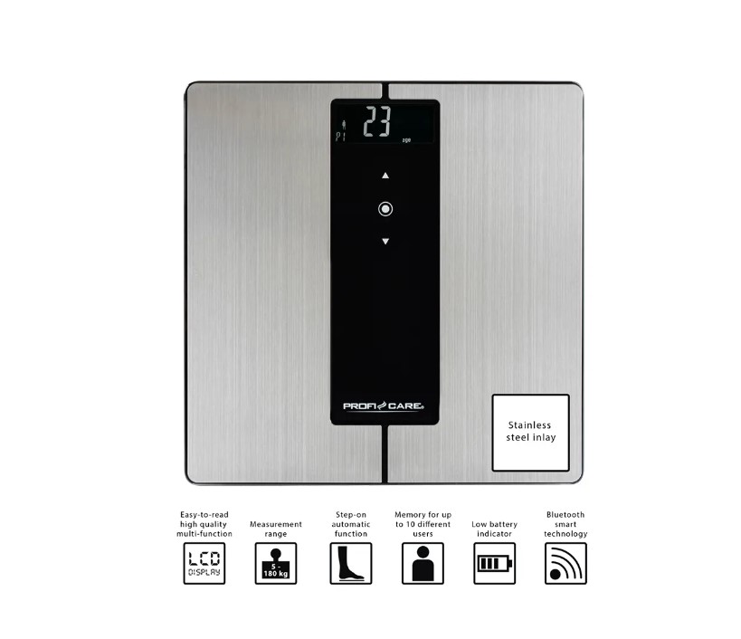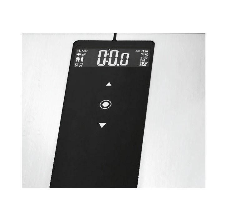 Для анализа веса, жировой ткани, процентного содержания воды, мышечной массы, костной массы, суточной потребности в калориях, индекса массы тела и биологического возраста, внутреннего жираПлатформа из стекла 30 х 30 см