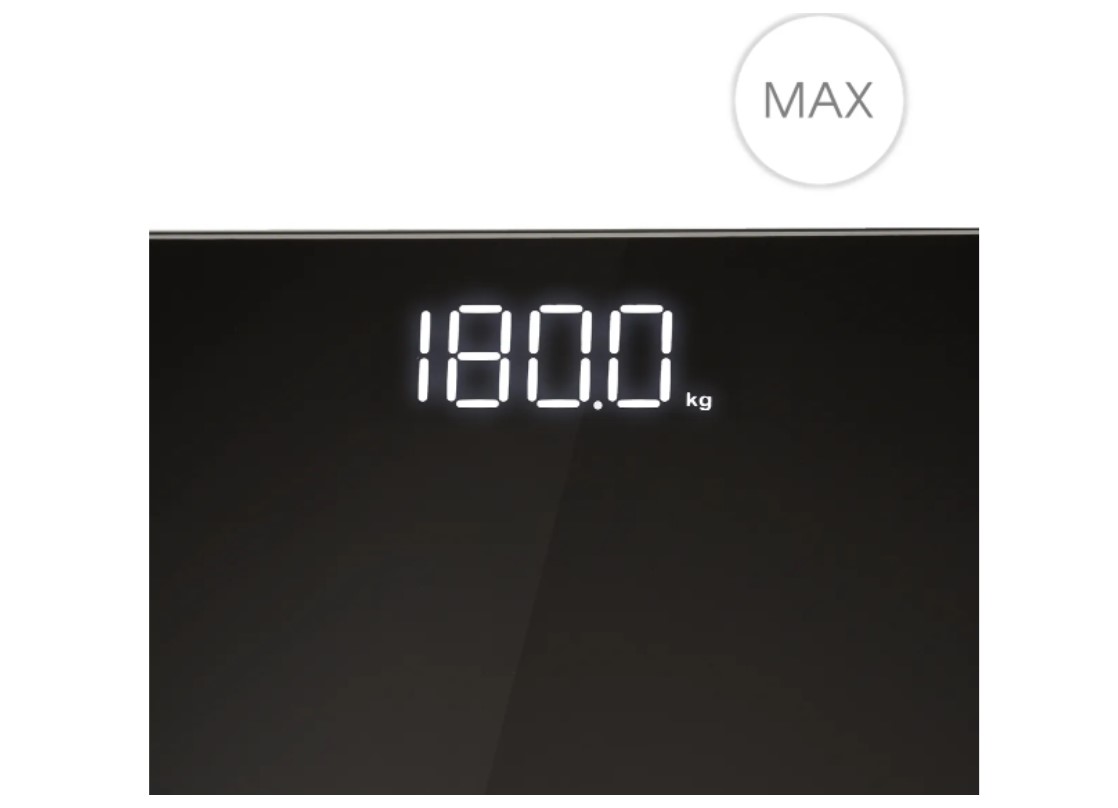 4 высокочувствительных датчика определяют вес с точностью до 100 г в диапазоне от 5 до 180 кг. По умолчанию весы определяют массу в килограммах. Также при желании вы можете перенастроить прибор так, чтобы результаты взвешивания отображались в фунтах.