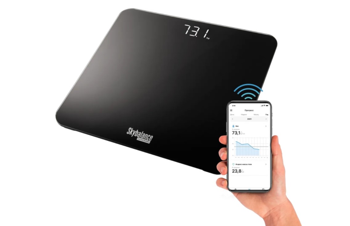 Со смарт-весами удобно контролировать изменение веса через смартфон. Прибор синхронизируется с мобильным приложением Ready for Sky через встроенный модуль Bluetooth v4.0. Программа определяет индекс массы тела и сохраняет в памяти историю взвешиваний.