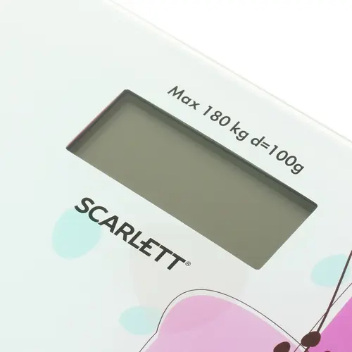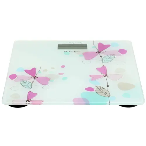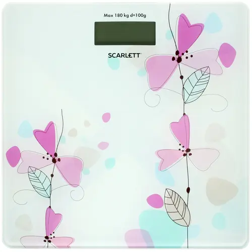 Весы оборудованы системой из 4-х датчиков, которые гарантируют измерение массы тела с точностью до 100 г. Платформа весов изготовлена из прочного закаленного стекла и украшена красочным цветочным рисунком. На платформе имеется ЖК-дисплей с яркой подсветкой.