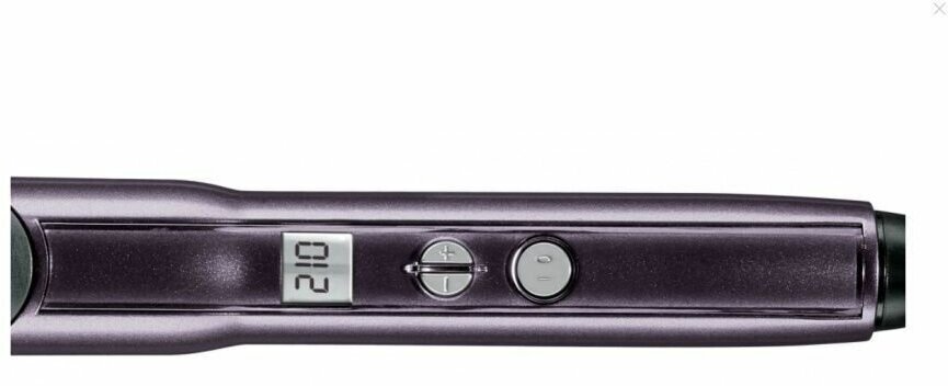 На жидкокристаллическом экране отображается температура нагрева. На выбор 11 режимов - от 160°C до 210°C. Показатель температуры будет мигать до тех пор, пока плойка не нагреется до нужного значения.
