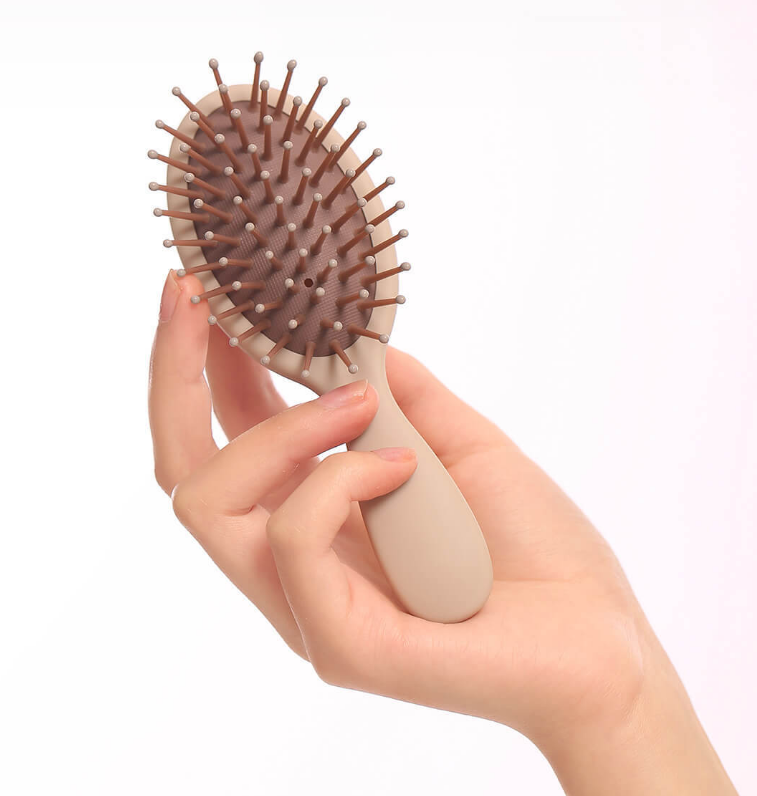 Размер щетки близок к размеру женской ладони, поэтому идеально ложится в руку, ею легко и удобно пользоваться. Материал схож по свойствам с кожей, он мягкий и комфортный. Мягкие и ровные линии в сочетании с элегантным стилем станут приятным дополнением к плавной функциональности щетки. Подушка щетки легко пропускает воздух, наполняя им ваши волосы у корней и создавая этим эффект объемных волос.