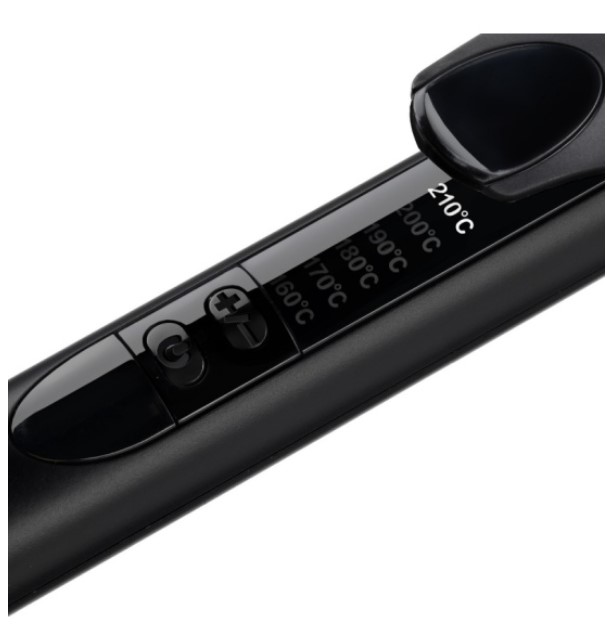 Стильный LED дисплей поможет выбрать температуру, подходящую для вашего типа волос: 160°C -170°C –для чувствительных и тонких волос, 180°C -190°C – для нормальных волос, 200°C -210°C – для плотных и жестких волос.
