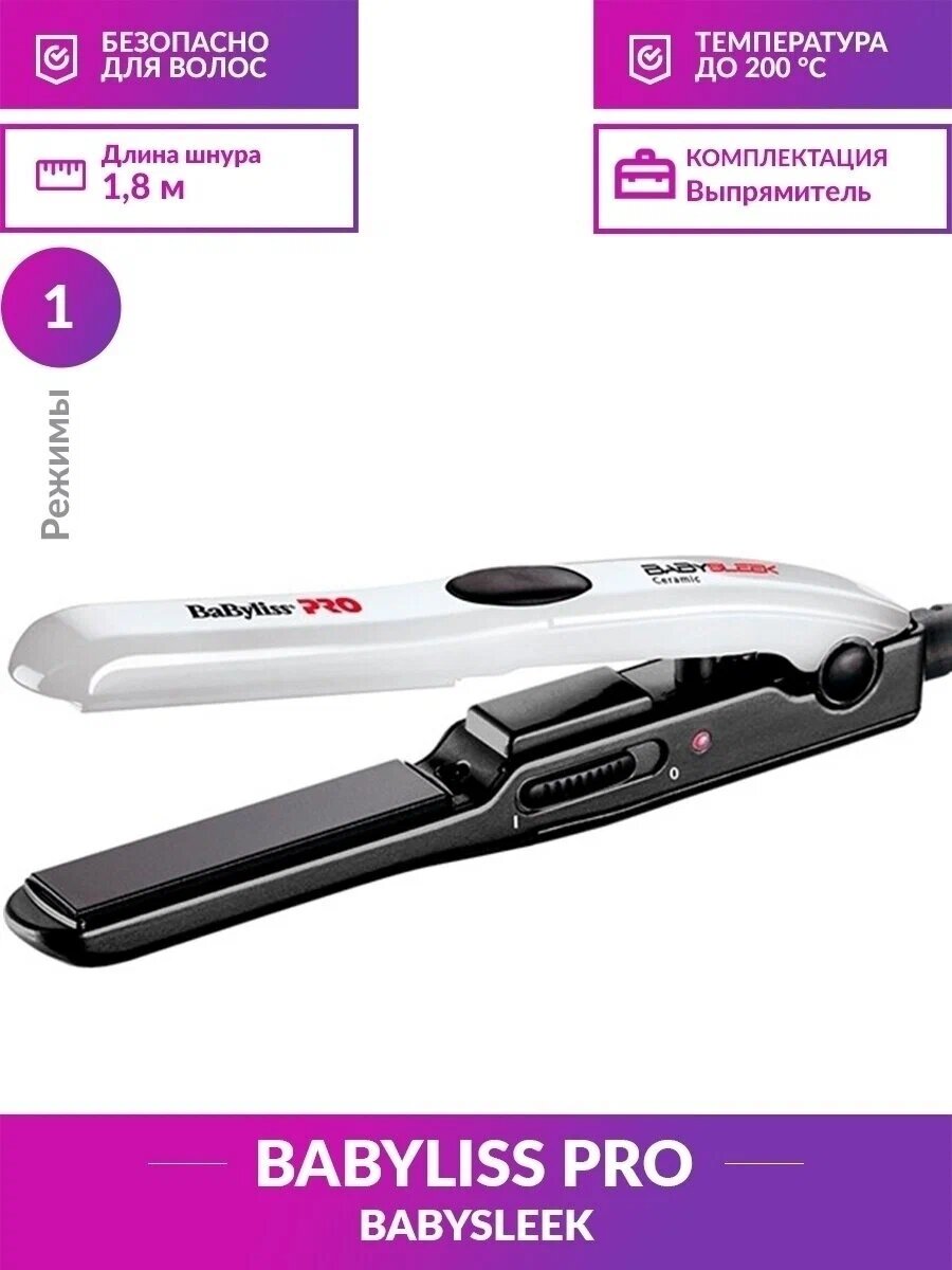 Выпрямитель BaByliss Pro Baby Sleek BAB2050E характеризуется компактным размером. Благодаря этому устройство удобно брать с собой в поездки, использовать для укладки короткой стрижки или челки. Модель оборудована панелями с керамическим покрытием. Это способствует бережному воздействию на пряди без риска повреждения. Пластины быстро и равномерно разогреваются до 200°C. Термоизолированный наконечник эффективно снижает риск получения ожогов.