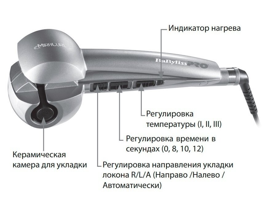 настройка температуры, функция завивки