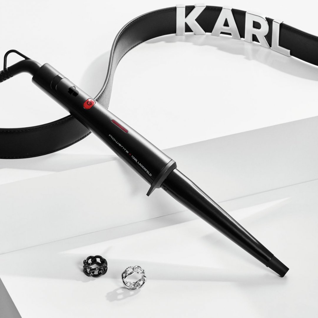 Электрощипцы конические Rowenta Karl Lagerfeld Conical Wave CF324LF0 позволяют создавать укладку в домашних условиях. Благодаря особой форме рабочей части модель оптимальна для завивания естественных локонов. Поверхность разогревается равномерно, а интенсивность нагрева можно регулировать. Это позволяет избежать повреждения прядей. Кератиново-турмалиновое покрытие обеспечивает бережное воздействие на волосы, а также способствует приданию блеска.