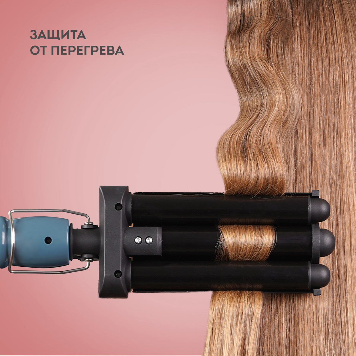 Прибор имеет 3 нагревательных элемента диаметром 22 мм и не требует особых навыков в завивке волос.