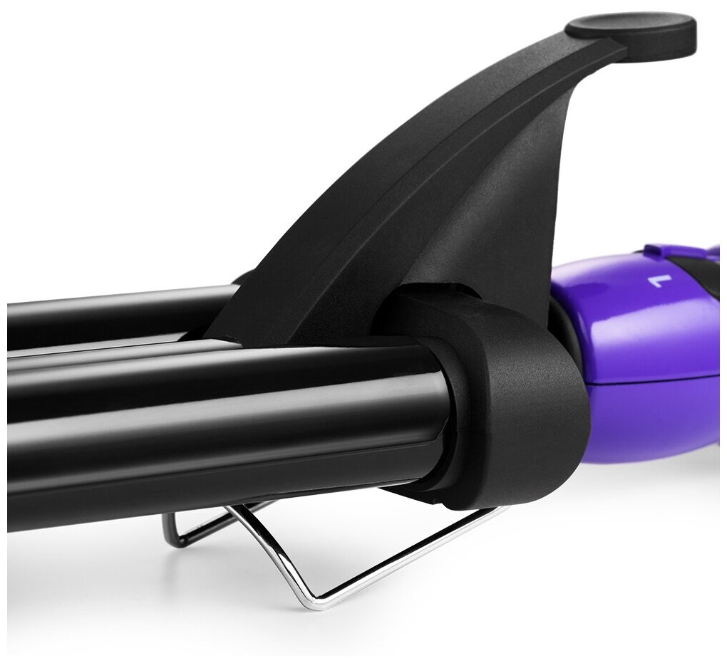 С помощью специального рычага, выполненного из пластика, стайлер легко открывается. Рычаг не нагревается, удобно лежит под пальцем. А благодаря встроенной подставке горячие щипцы не соприкасаются с поверхностью, защищая её от нагрева.