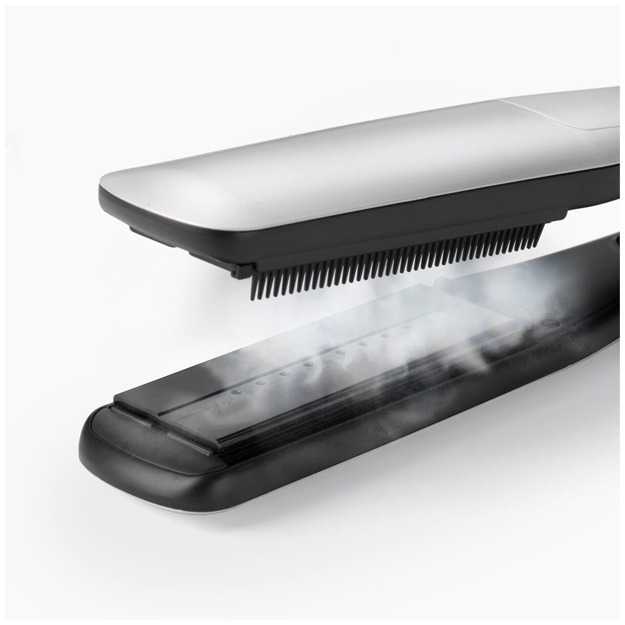 2 режима подачи пара: низкий (2 г / мин) и высокий / 4 г / мин). Резервуар для воды 30 мл. Съемная насадка для выпрямления волос. Система обогрева Advanced CeramicsИсточник питания