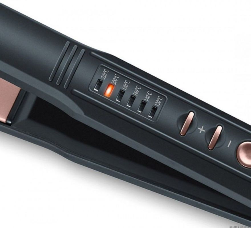 Особенности: Светодиодные индикаторы отображают степень нагрева: зеленый индикатор 120-140 C, желтый индикатор 160-180 C, красный индикатор 200-220 C. Размеры изделия 32,5 x 4,5 x 3,5 см.