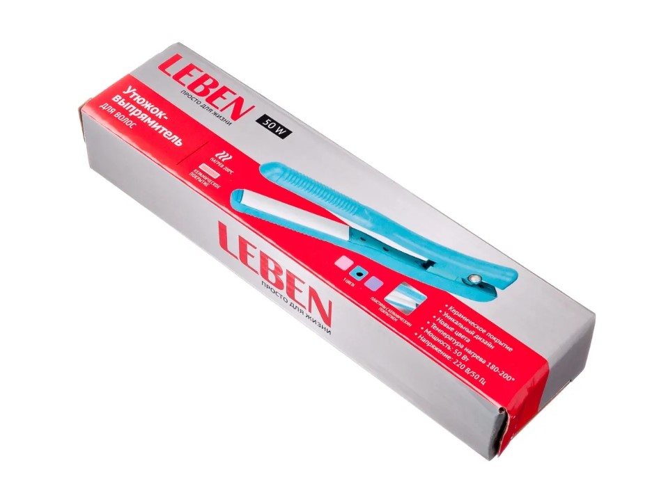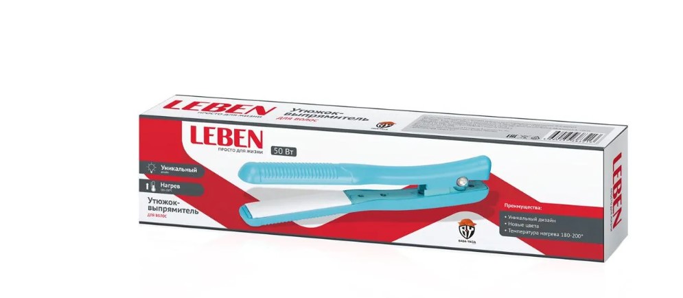 Утюжок-выпрямитель Leben позволяет делать безупречные укладки, как в салонах красоты. Устройство мощностью 50 Вт нагревается до 200° всего за полминуты. Керамическое пластины равномерно прогреваются и деликатно выравнивают пряди, предотвращая их пересушивание и повреждение.