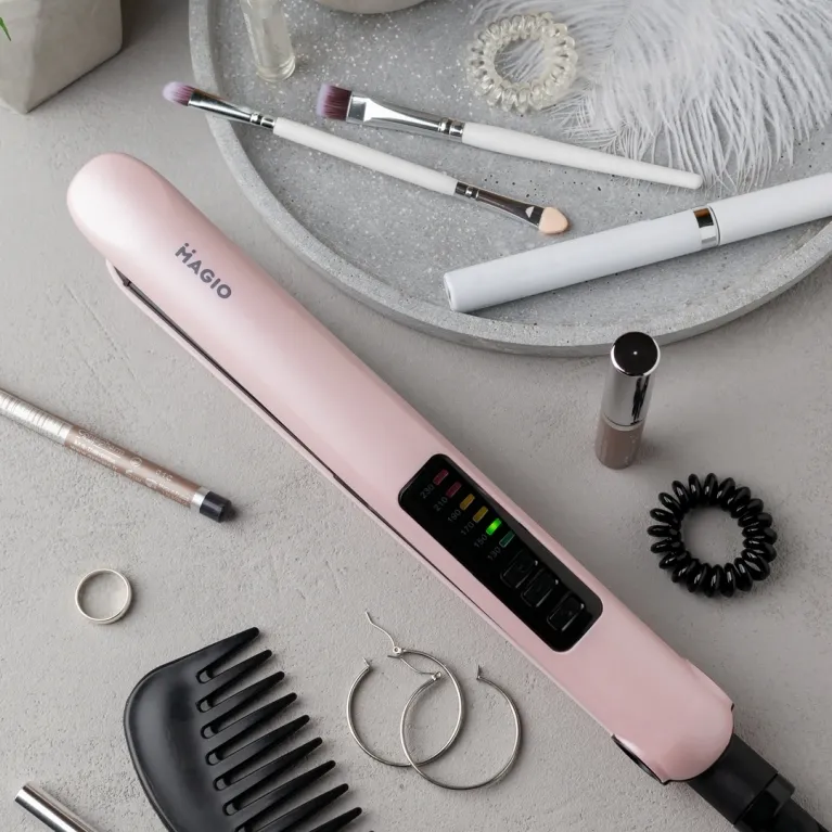 Устройство Magio MG-600 в процессе эксплуатации не выскальзывает из рук. Этому способствует специальная прорезиненная накладка, которой оснащена рукоять выпрямителя. Компактная модель не занимает много места в сумке или чемодане, поэтому ее удобно брать в командировку и использовать за пределами дома. Корпус устройства произведен из прочного и качественного материала, не подверженного образованию трещин, сколов и других механических повреждений.