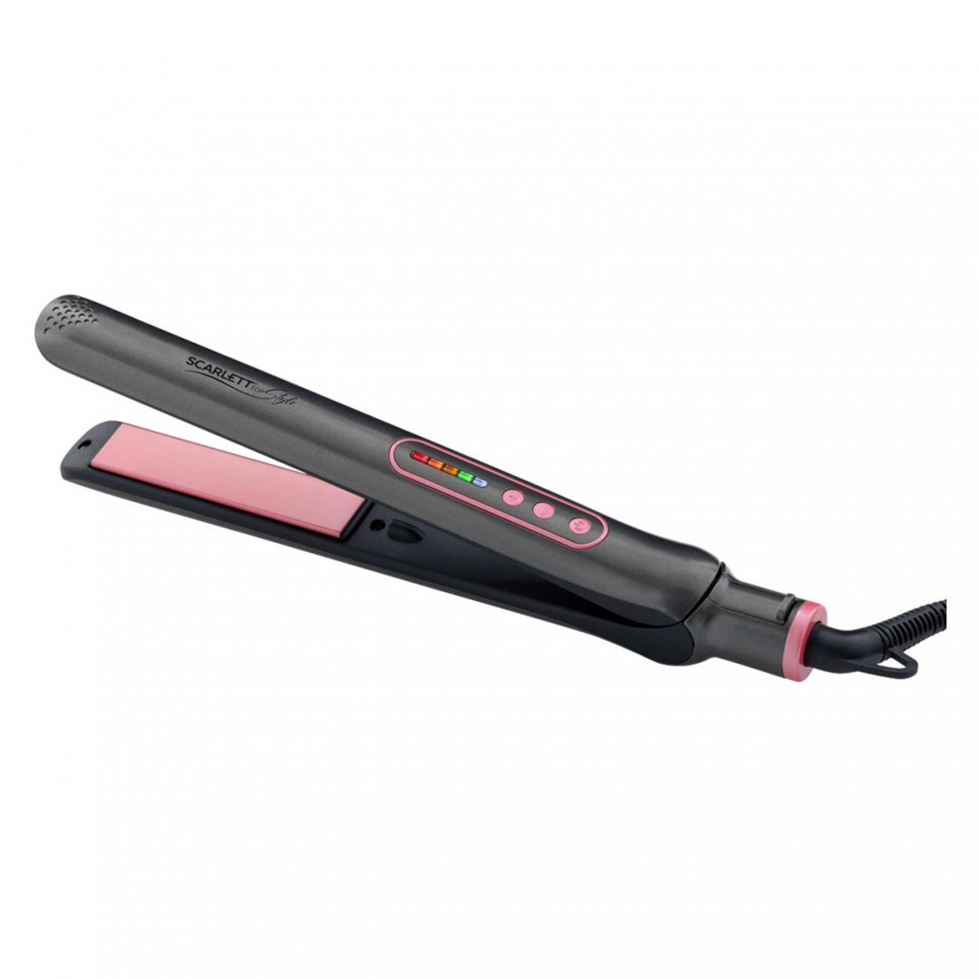 Scarlett SC-HS60T25 оснащен механизмом отключения при перегреве и термоизолированным наконечником. Температура достигает 200°С. Для нагрева требуется около 60 секунд. Регулировка температуры плавная - предусмотрено четыре режима. Пластины с керамическим покрытием хорошо удерживают тепло и равномерно нагреваются. Предусмотрена возможность их фиксации. Индикаторы сообщают о включении прибора, готовности к работе, режиме нагрева и температуре. Корпус окрашен в серый и розовый цвета.
