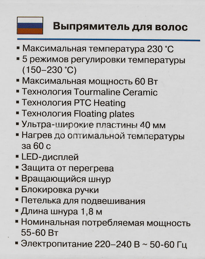 настройка температуры, максимальная температура 230°С время нагрева 60с, дисплей, цвет черный