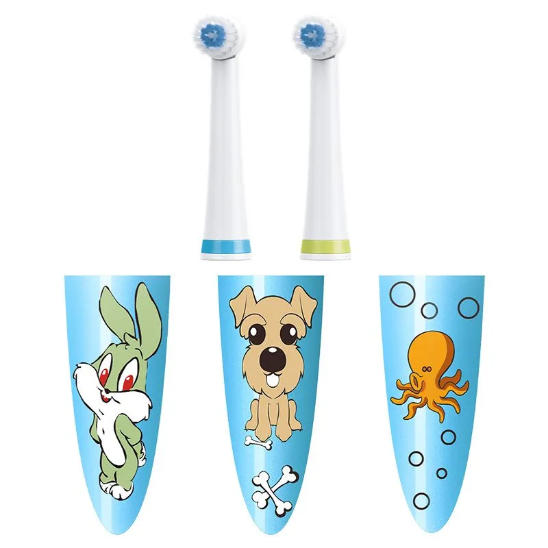 Детская зубная щетка имеет в комплекте 4 сменные насадки из высококачественной нейлоновой щетины с закругленными кончиками.