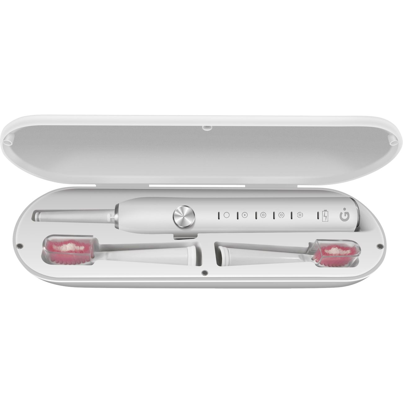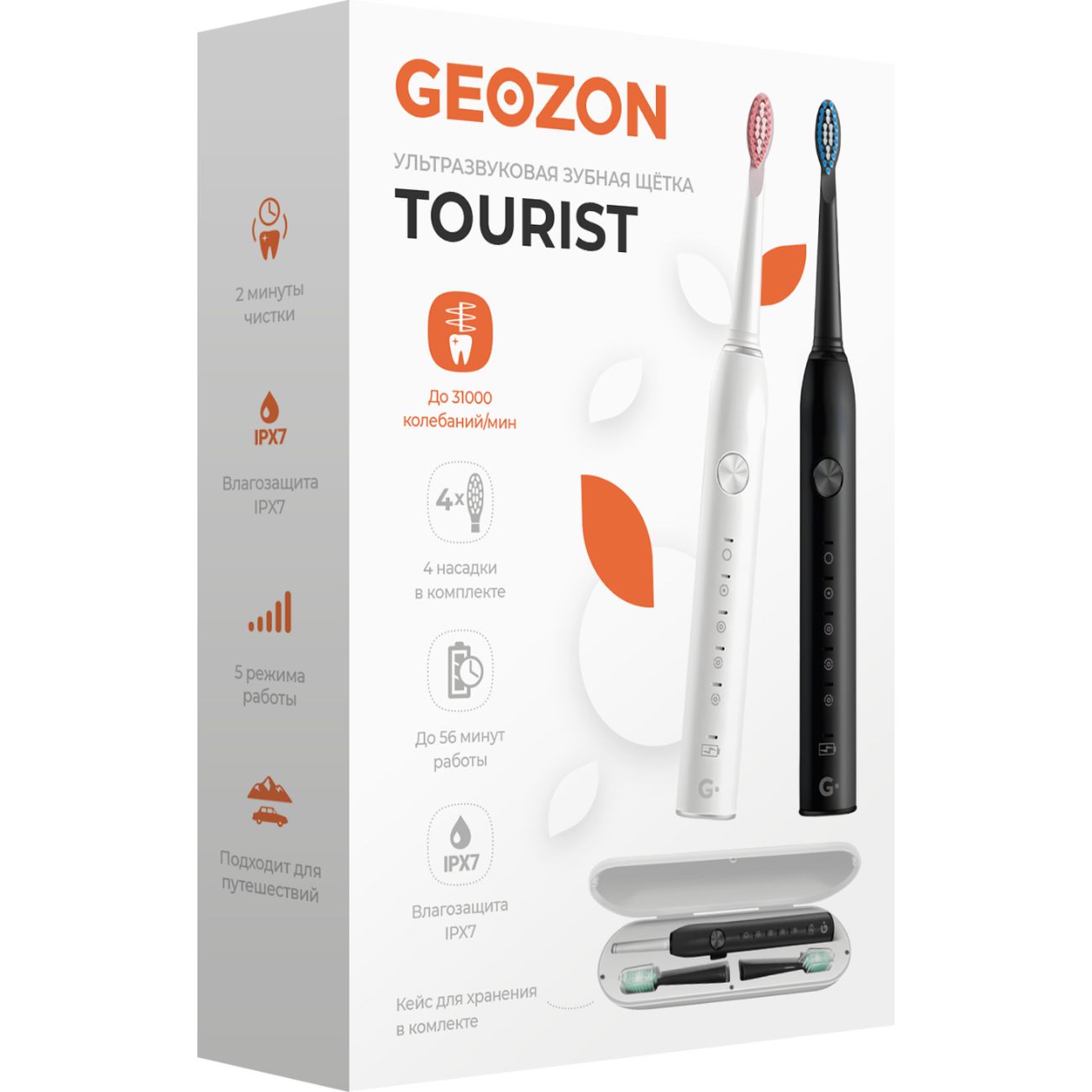 Электрическая зубная щетка Geozon Tourist G-HL02WHT White — удачный выбор для поездок. Она получает питание от литий-ионного аккумулятора емкостью 500 мА*ч, который заряжается от интерфейса USB 5В, 1А — для подключения использовать можно множество современных устройств. Восстановление ресурса батареи длится 6 часов, время работы — 45 дней при чистке два раза в день по 2 минуты. Для удобства транспортировки в комплект входит дорожный футляр.