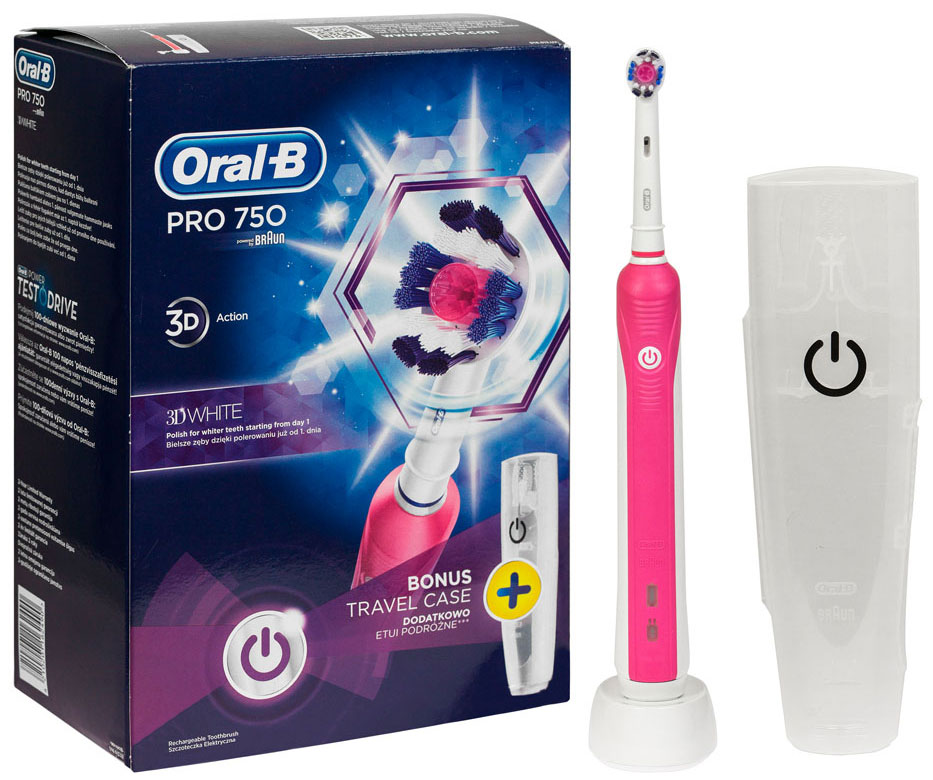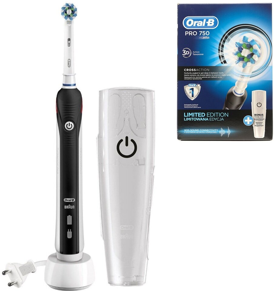 электрическая зубная щетка Oral-B PRO 750, насадка Cross Action(1шт.), футляр, зарядное устройство, инструкция, гарантийный талон