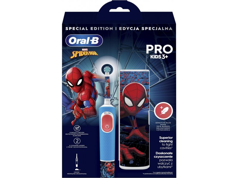 Электрическая зубная щетка Oral-B Pro Kids, которую стоматологи рекомендуют для детей с 3 лет, обеспечивает бережную и эффективную чистку. Эта зубная щетка с двумя режимами чистки, включая уникальный детский режим для чувствительных зубов, мягко очищает детские зубы. Она удаляет больше зубного налета, чем обычная ручная зубная щетка. В комплект входят 4 тематические наклейки, которые можно использовать для персонализации рукоятки.