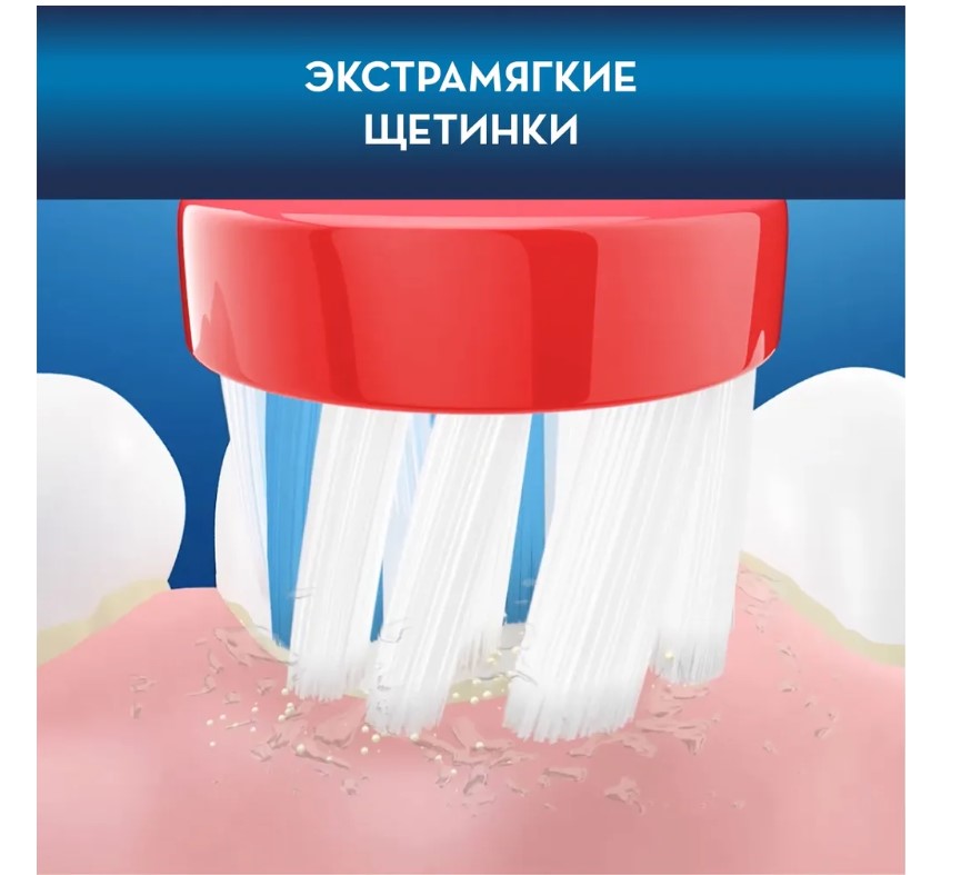 •Экстрамягкие щетинки бережно воздействуют на детские десны. Небольшая круглая головка подходит для детского рта и удаляет гораздо больше налета по сравнению с обычной щеткой.