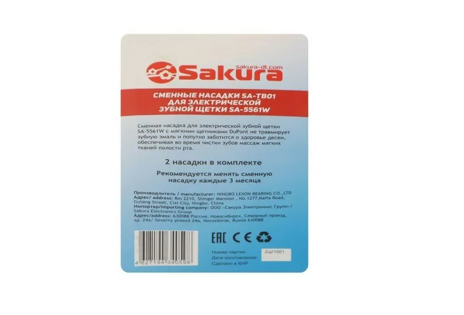 Сменные насадки предназначены для электрической щетки Sakura SA-5561W. Насадки оснащены плотными щетинками, которые не царапают эмаль и не наносят вреда деснам. Щетинки легко приникают в межзубные промежутки, удаляют остатки пищи и зубной налет. Замену рекомендуется выполнять после 2-3 месяцев использования, так как со временем щетина подвержена износу и в ней постепенно начинают размножаться бактерии.