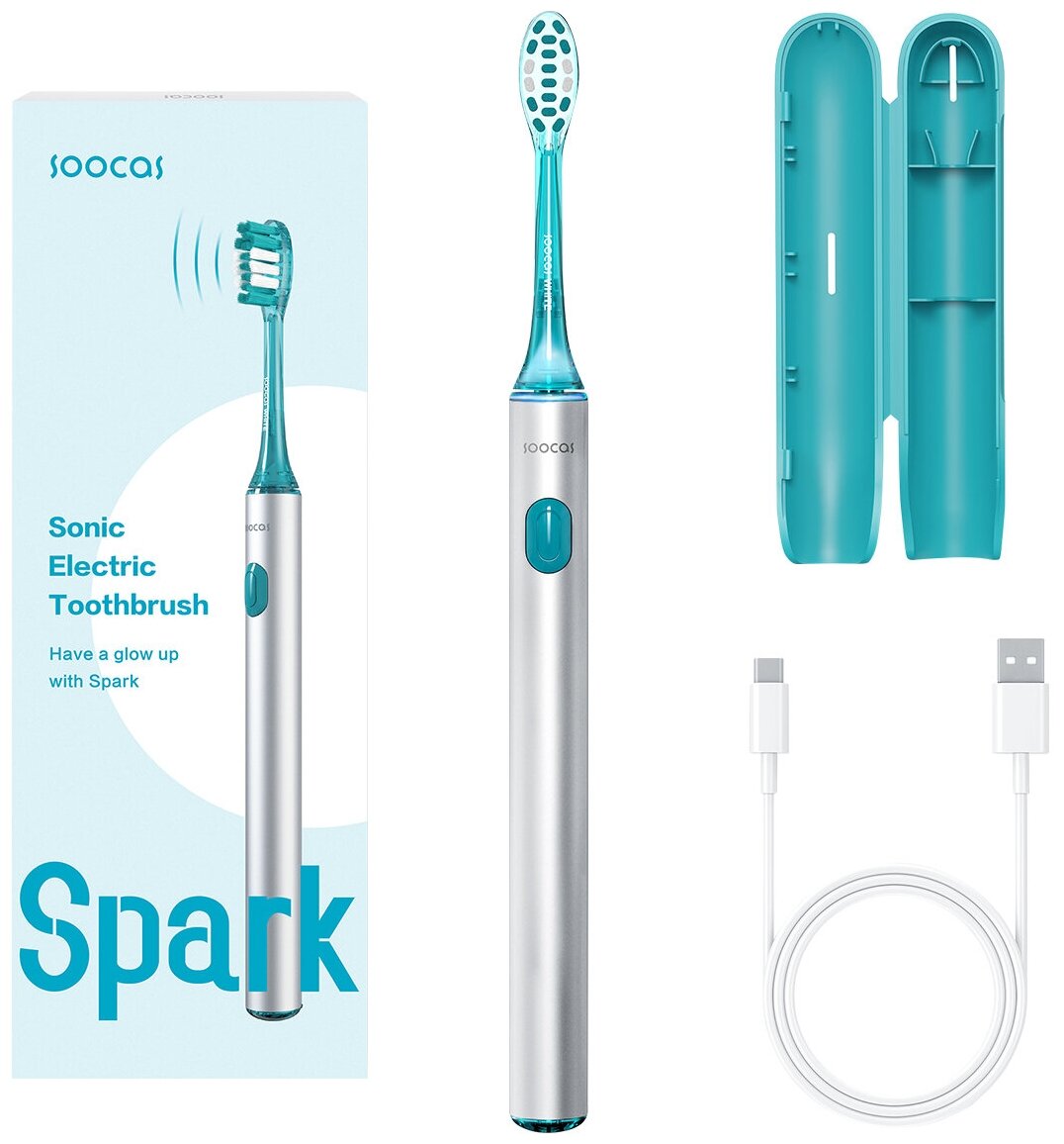 электрическая зубная щётка, дорожный футляр, зарядный кабель Type-C, инструкция