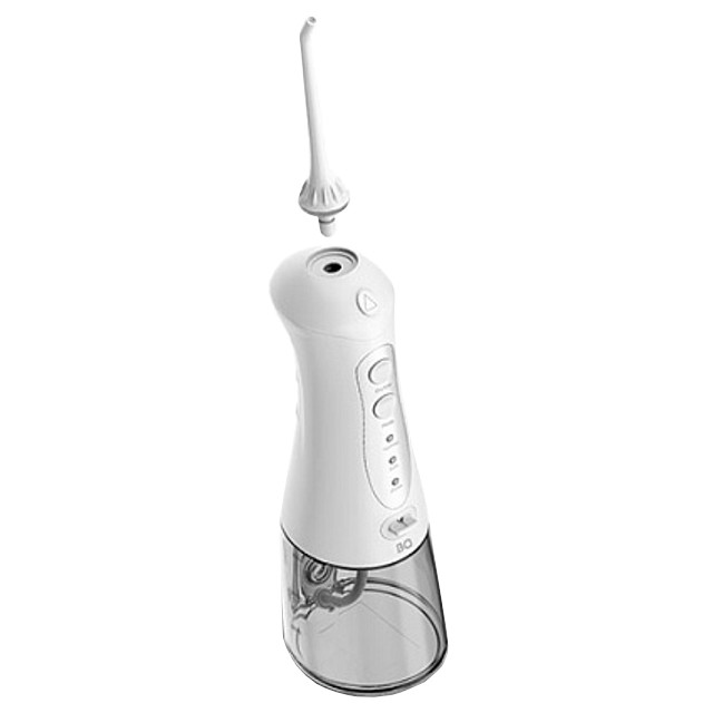 Портативный ирригатор cтанет незаменимым компактным помощником в ежедневном уходе за гигиеной полости рта и поможет добиться шикарной улыбки без похода к специалисту. Ирригатор представляет собой устройство для профессиональной чистки зубов, имплантов, мостов и брекетов. Кроме того, с его помощью можно осуществлять массаж десен и чистку языка. Использование ирригатора помогает удалить остатки пищи и бактерии из труднодоступных мест, с которыми не справляется обычная зубная щетка, а также устранить неприятный запах изо рта, зубной камень и кровоточивость десен. Ирригатор имеет 3 режима и высокую частоту пульсаций - до 1600 имп/мин. Прибор соответствует стандарту влагозащиты IPX7. Устройство работает от аккумулятора до 60 минут, а благодаря эргономичному дизайну и компактности его удобно хранить в ванной или брать с собой в дорогу. Емкость для воды имеет объем 300 мл. В комплектацию устройства входят 3 насадки, вращающихся на 360 градусов. Беспроводной ирригатор прекрасно подойдет как для людей, использующих брекеты, зубные протезы, имплантаты или коронки, так и для тех, кто просто хочет позаботиться о здоровье десен и белизне зубов.