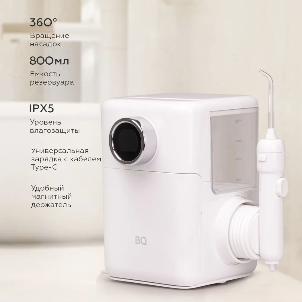 Ирригатор BQ IR003 прекрасно подойдет как для людей, использующих брекеты, зубные протезы, имплантаты и коронки, так и для тех, кто просто хочет позаботиться о здоровье десен и белизне зубов.