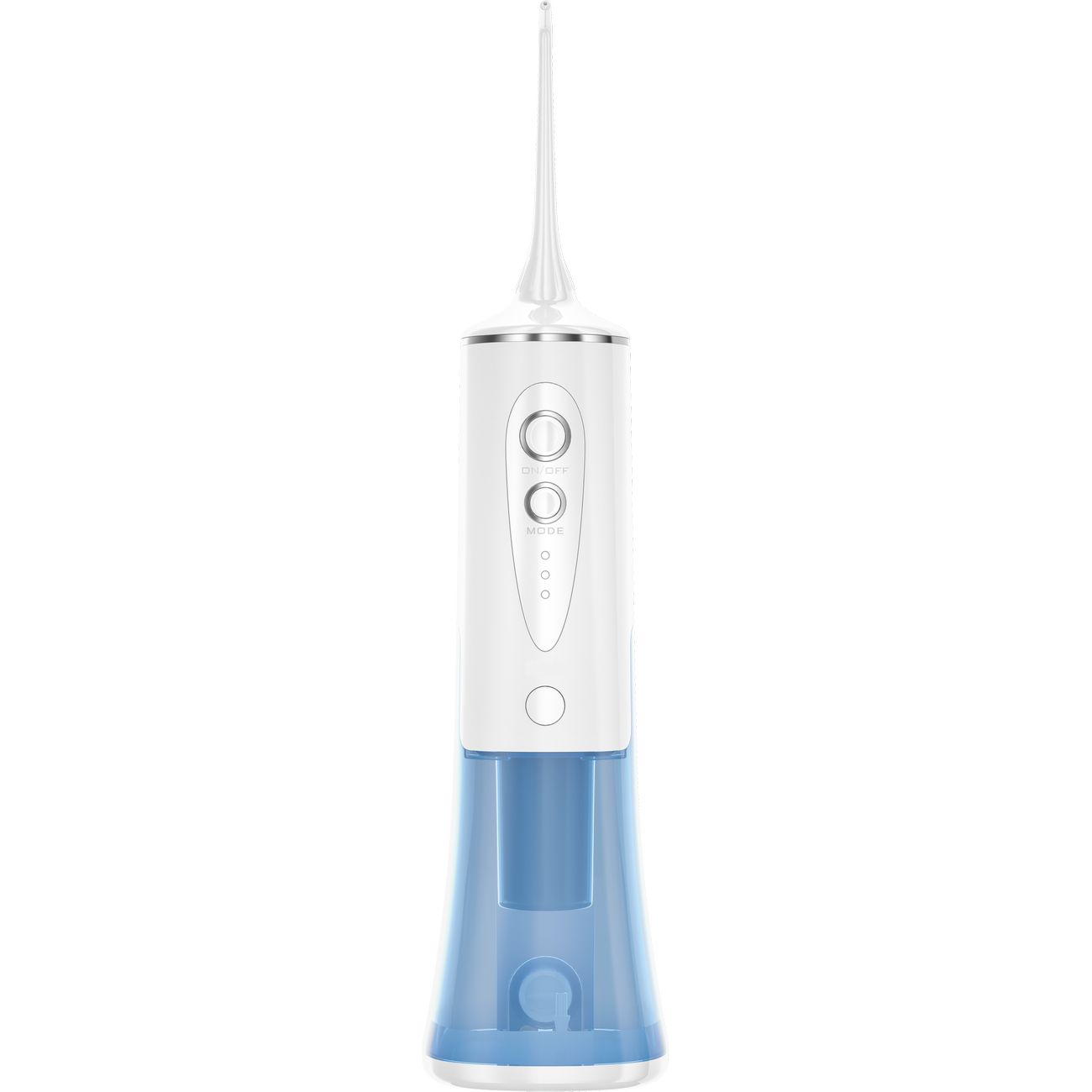 Ирригатор Geozon Comfy G-HL04BLU в корпусе голубого цвета потребляет 2 Вт электроэнергии. Он работает от аккумулятора емкостью 1200 мА*ч (Li-ion). Для полной подзарядки батарее необходимо 3-5 часов. Давление струи можно регулировать, устанавливая значения 40, 90 или 120 аПа. Корпус ирригатора сделан из пластика. Уровень его влагозащиты составляет IPX7. Модель весит всего 289 г, поэтому удобна в использовании и транспортировке. Время работы ирригатора без подзарядки составляет 35-60 дней (в зависимости от выбранной интенсивности), при условии использования два раза в сутки по 2 минуты. В комплект входят четыре сменных насадки и зарядное устройство.