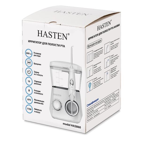 Ирригатор Hasten HAS860 White подходит для ежедневного ухода за полостью рта. Устройство обеспечивает эффективное очищение межзубного пространства, мостов, коронок и брекет-системы. Плавная регулировка мощности позволяет выбрать оптимальные параметры в зависимости от индивидуальных предпочтений и чувствительности зубов. Вращение насадки на 360° помогает удалять загрязнения и остатки пищи в труднодоступных местах. Встроенный таймер предназначен для программирования времени работы. Модель автоматически отключается через 3 мин.
