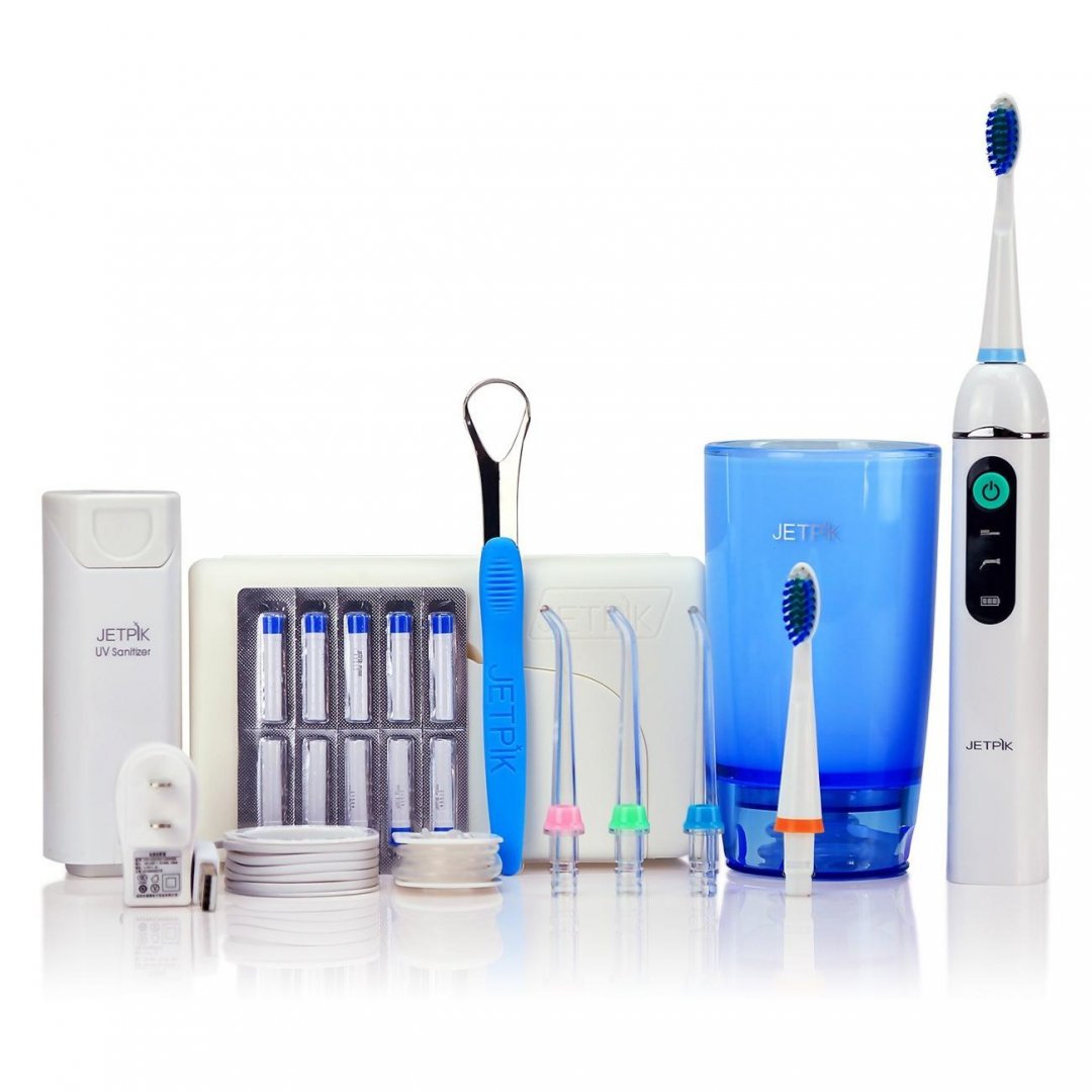 Ирригатор Jetpik JP200 Ultra имеет компактные размеры. Прибор работает от аккумулятора, на полную подзарядку которого уходит 8 часов. В наборе пять насадок. Конструкцией предусмотрен специальный отсек для их хранения. Корпус водонепроницаемый, выполнен из пластика. Материал легкий, прочный, долговечный, не боится механических повреждений, пыли и влаги, сохраняет изначальные свойства на протяжении всего срока службы изделия. Принцип работы устройства - импульсный. Объем резервуара для воды - 0,2 л.