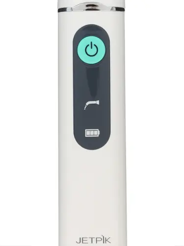 Ирригатор Jetpik JP50-Elite работает от аккумулятора до 25 минут. На корпусе предусмотрен индикатор оставшегося уровня заряда. В комплекте прилагается стакан с функцией подачи воды и шланг с клипсой. Для подзарядки имеется USB- и АС-адаптер и зарядное устройство. Хранить ирригатор и насадки удобно в специальном дорожном футляре.