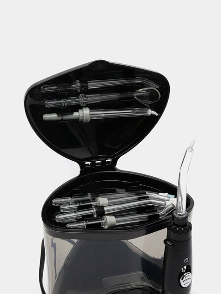 Стационарный ирригатор Ves Kenwell P-131 обеспечивает правильный уход за всей полостью рта. Частота пульсации струи составляет 1700 импульсов в минуту, давление достигает 890 кПа. Это позволит тщательно вычистить даже узкие межзубные области и устранить налёт. гибкая настройка На корпусе есть поворотный регулятор уровня давления, доступно десять вариантов. Даже тот, кто только начинает пользоваться ирригатором, без труда подберёт комфортную силу воздействия. полезные аксессуары Вместе с устройством вы получите восемь насадок: общего назначения, для чистки языка, имплантатов, брекет-систем, пародонтические и др. Для их компактного хранения в крышке есть специальный отсек.