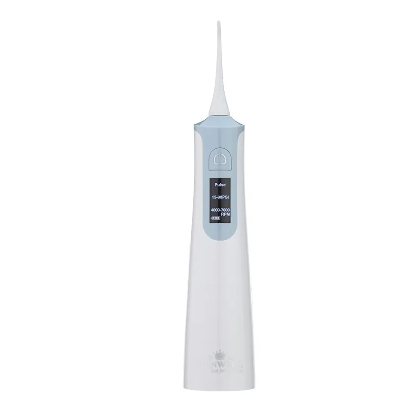 Ирригатор Kenwell P-141 White поставляется с насадкой для чистки языка. Модель оснащена емкостью для воды объемом 200 мл. Для восполнения ресурса батареи требуется 5 ч. Устройство имеет три уровня давления. Насадка вращается на 360°, что отвечает за тщательное удаление налета. Во избежание поломки ирригатора при использовании в душе предусмотрен водонепроницаемый корпус. Световой индикатор оповещает о низком уровне заряда батареи. Для бережного очищения брекетов и имплантов в комплекте поставляется ортодонтическая насадка.
