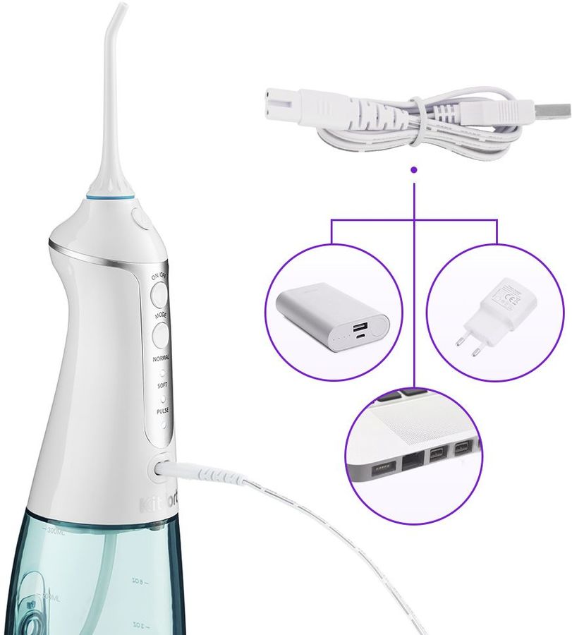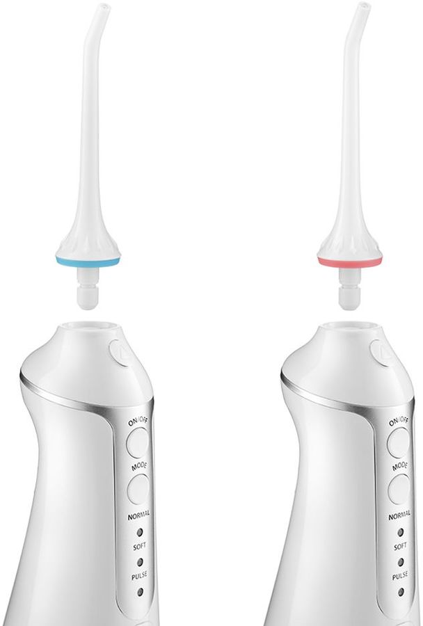 Описание: Простой и эффективный прибор для чистки полости рта. Тонкая и сильная струя воды не только вымывает остатки еды, налёт из межзубного пространства и пародонтальных карманов, но и массажирует дёсны. 3 режима работы: Normal, Soft и Pulse. В комплекте с ирригатором идут 2 классические струйные насадки.