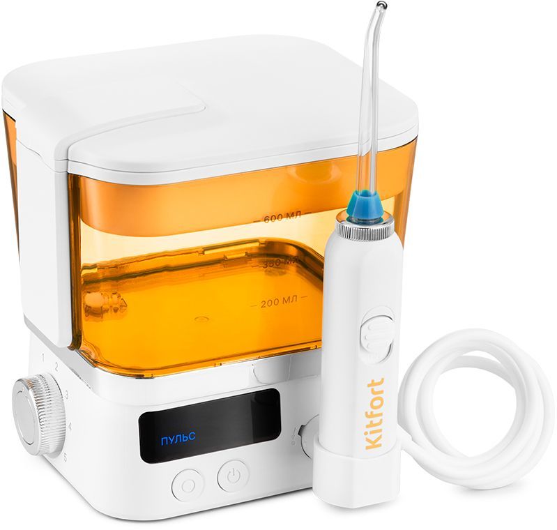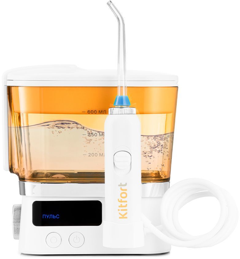 Описание Стационарный и портативный ирригатор КТ-2917 - это простой и эффективный прибор для чистки полости рта. Тонкая и сильная струя воды, подаваемая под давлением от 0,7 до 8 бар, вымывает остатки еды, налёт из межзубного пространства, массажирует дёсны.